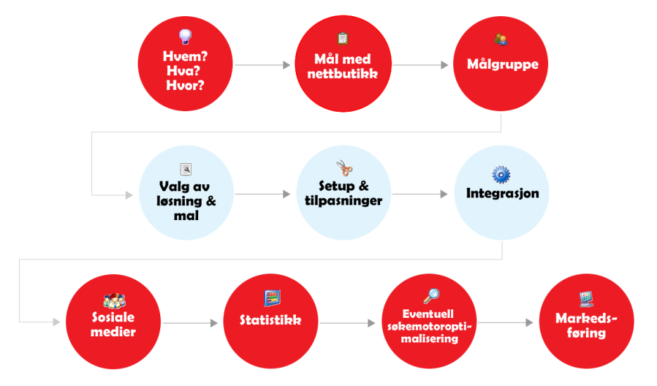 En god nettbutikk gir fantastiske muligheter. Men man må begynne riktig! For at våre kunder skal lykkes med sin nettsatsning, har vi laget en modell. Den er basert på 23 års erfaring.